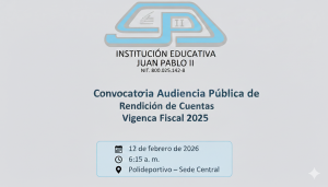 La Institución Educativa Juan Pablo II convoca a toda la comunidad educativa a participar en la Audiencia Pública de Rendición de Cuentas correspondiente a la vigencia fiscal 2025, un espacio de participación ciudadana mediante el cual se socializará la gestión administrativa, financiera y presupuestal de la institución, así como el manejo de los recursos del …